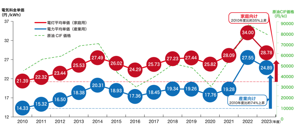 実際に、電気料金の平均単価はここ数年で上昇傾向にあり、エネルギーコストが暮らしに与える影響は、年々大きくなっています。